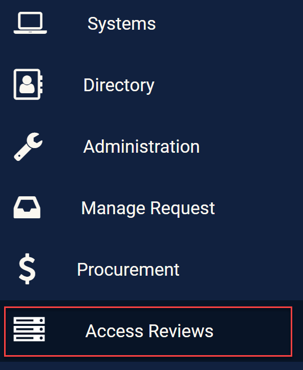 In order to do this, click on the Access Reviews Module in the side bar in order to view the access review page.