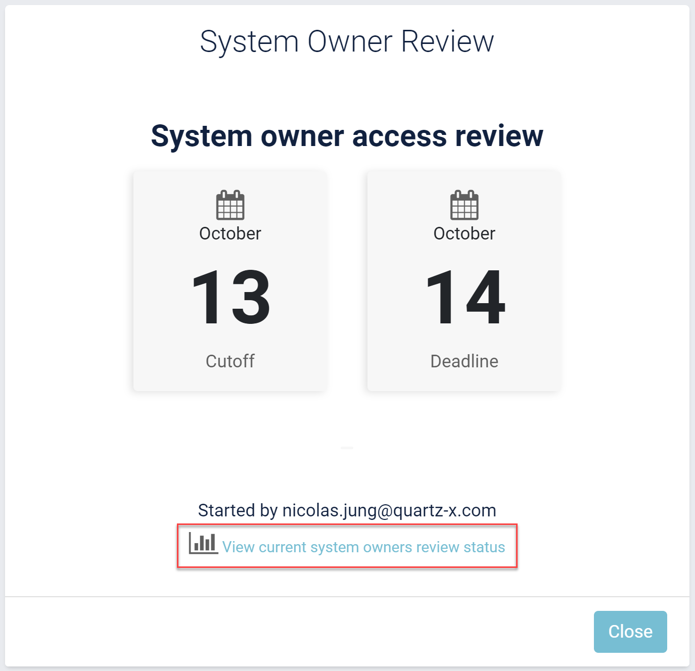 Figure 5: Starting a resource owner access review