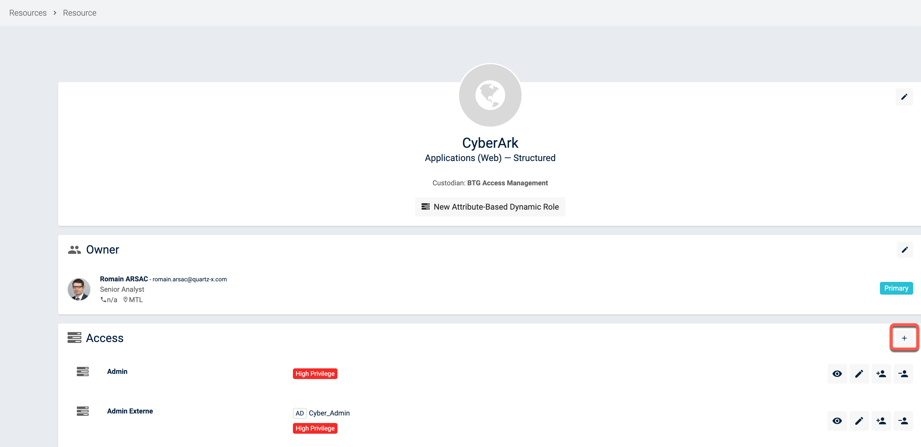 If you want to create a resource access on an existing resource, you can use the "+" button on the resource's detail page.