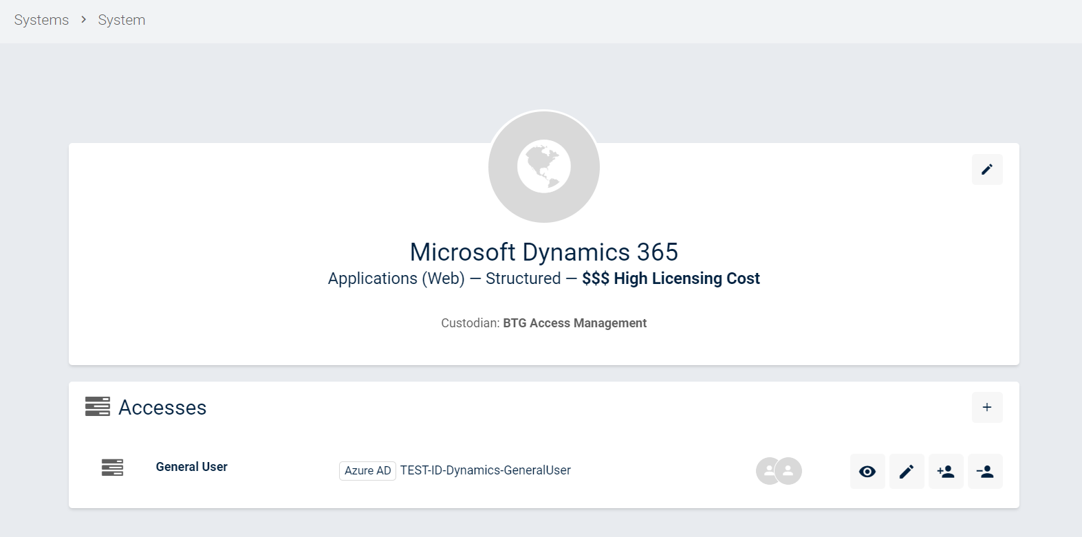 With the "+" icon you can add this access to your shopping cart. You can also remove this access by clicking the "-" icon (access cart will have to be submitted to apply these changes).